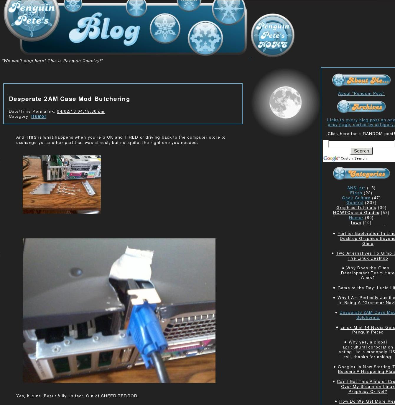 I've been following this guy off and on ever since I discovered him -- I forget how, probably through a Linux forum somewhere -- because he's practically always right. And out of entire internet, he comments on my blog?